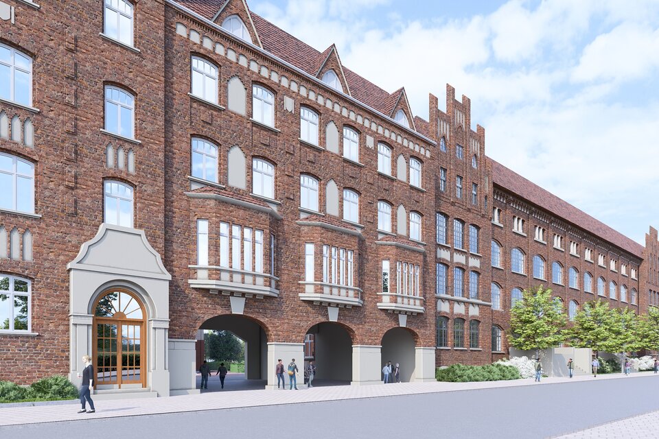 Hier sind künftig 96 helle Wohnungen in Größen zwischen 39 und 83 Quadratmetern vorgesehen. Die neu entstehenden Wohneinheiten werden ein bis drei Zimmer umfassen und über einen Wohn-Kochbereich, ein modernes Duschbad, einen Flur sowie über Abstellräumlichkeiten und eine Loggia verfügen. Aufzüge verbinden die Etagen neben den historischen Treppenhäusern miteinander.