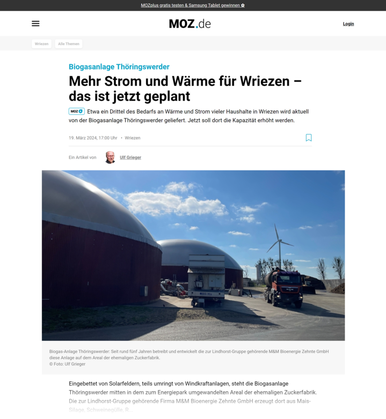 Für einen aktuellen Artikel hat die Märkische Oderzeitung (MOZ) gemeinsam mit Wriezens Bürgermeister Karsten Ilm unsere Biogasanlage Thöringswerder…